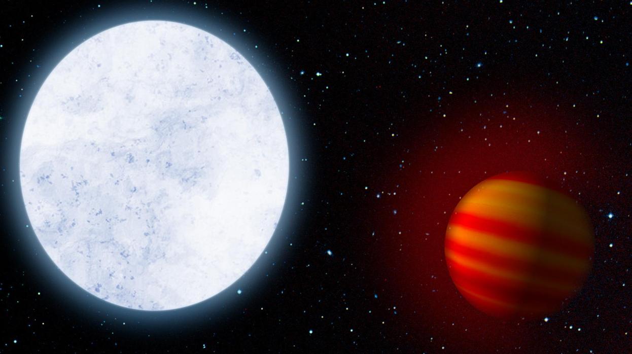 La temperatura de la estrella Kelt-9 asciende a unos 10.000 ºC (el Sol alcanza los 5.500ºC), y su planeta gira alrededor de ella en una órbita diez veces más pequeña que la de Mercurio en torno al Sol. Este planeta muestra una temperatura diurna de 4.300ºC, más caliente que muchas estrellas.