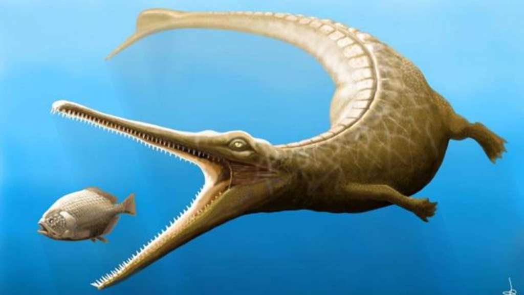 En ese momento, había dos grandes grupos de cocodrilos, cada uno con un cuerpo distinto. Había cocodrilos terrestres, con una espalda y un vientre acorazados por gruesas escamas, y patas para caminar sobre tierra. Pero también había cocodrilos sin coraza y con los miembros en forma de aletas.