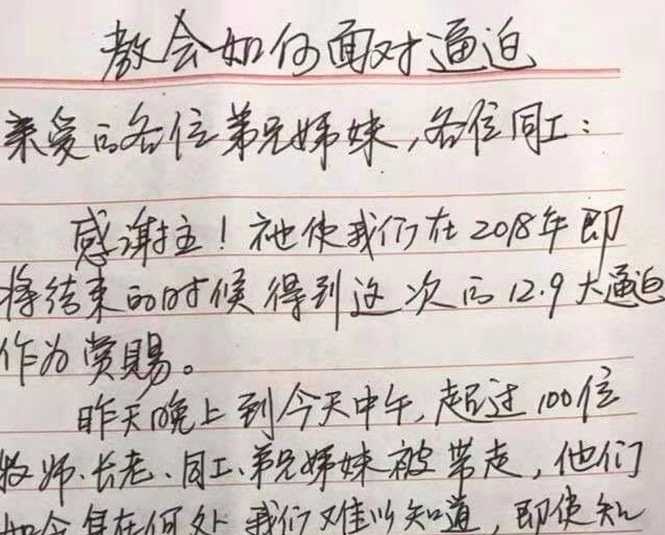 CHENGDU — An elder of Early Rain Covenant Church penned a handwritten letter providing spiritual exhortation and guidance on how the church should proceed in the middle of persecution as over 100 members, including pastors, elders and deacons, were arrested on Sunday by Chinese police. “Beloved brothers and sisters, do you have joy?” asked Li Yingqiang. “Are you…
