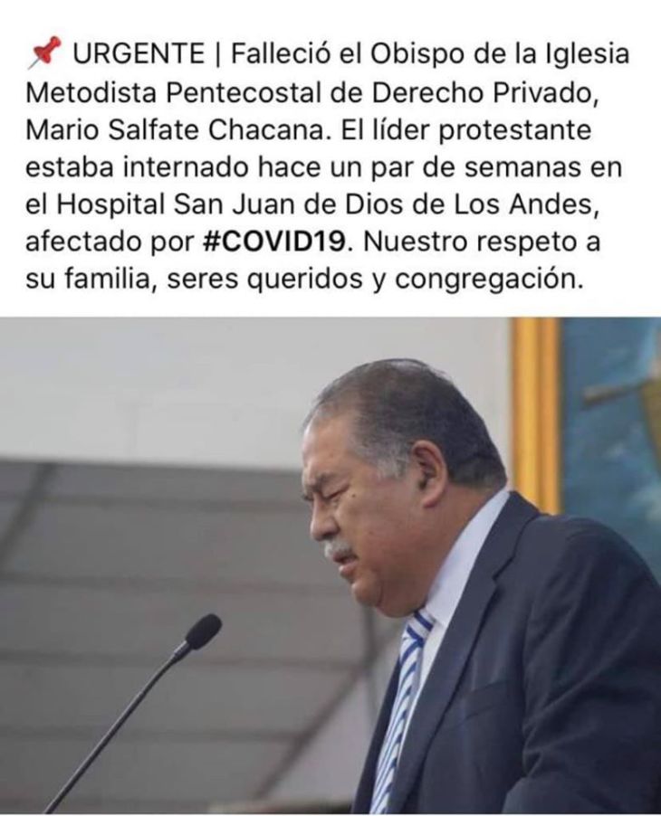 #NOTICIASCRISTIANAS. Comunidado entregado en redes social por IMP Los Andes: “Informamos a toda la Iglesia Metodista Pentecostal de Chile y a las Iglesias hermanas, que ha sido llamado a la presencia del Señor nuestro amado Obispo y Pastor Mario Enrique Salfate Chacana . Que la paz y la perfecta voluntad de nuestro buen Señor llene de tranquilidad el corazón de la congregación y su familia”.