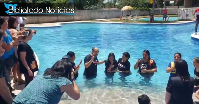 Después de su bautismo, Laura se sumergió en la piscina, junto con los otros 25 bautizados.
