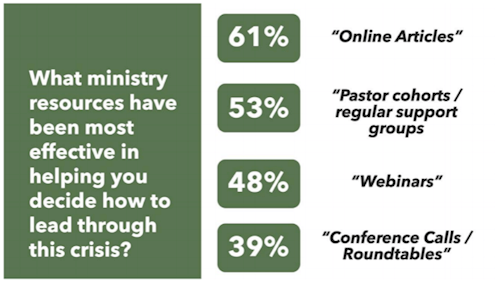 When we asked pastors and church leaders what modes of resources have been most effective in deciding how to lead through the crisis, the online articles (61 percent) was the most common answer.