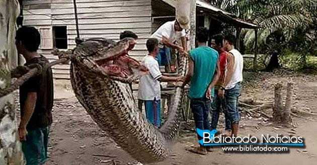 Era probablemente un python reticulated, el reptil más largo del mundo. Estos pythons gigantes son capaces de comer animales completamente crecidos, y, de vez en cuando, seres humanos. Un hombre de 25 años fue encontrado en el estómago de una pitón gigante en Indonesia en marzo.