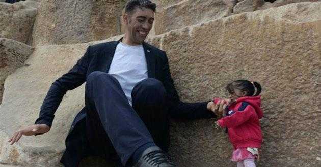 Impresionante! El hombre más alto del mundo y la mujer más pequeña juntos en Egipto