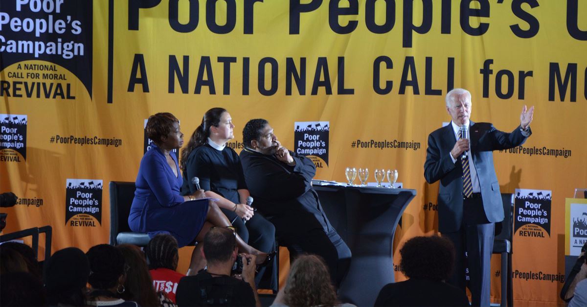 Former Vice President Joe Biden kicked off a major forum on faith and poverty issues Monday afternoon, fielding questions from faith leaders and low-income Americans during a gathering organized by the Poor People’s Campaign.