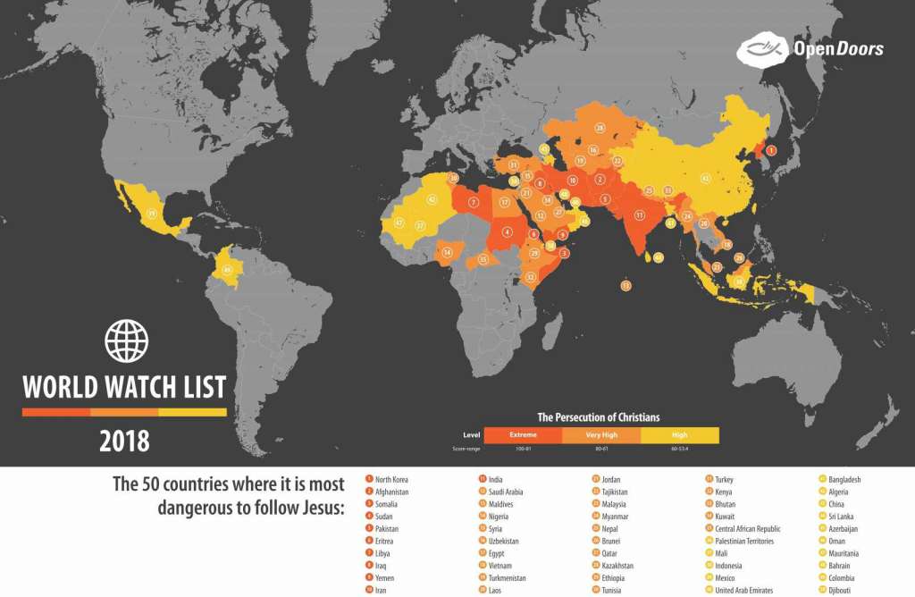 35 of the 50 nations on the list are largely Islamic, prompting Open Doors USA to note that Muslim “extremism” continues to be the “global, dominant driver of persecution” in the world today.