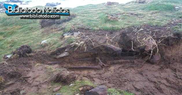 «SORPRENDENTE» El huracán Ophelia desentierra un extraño esqueleto de hace 1.500.