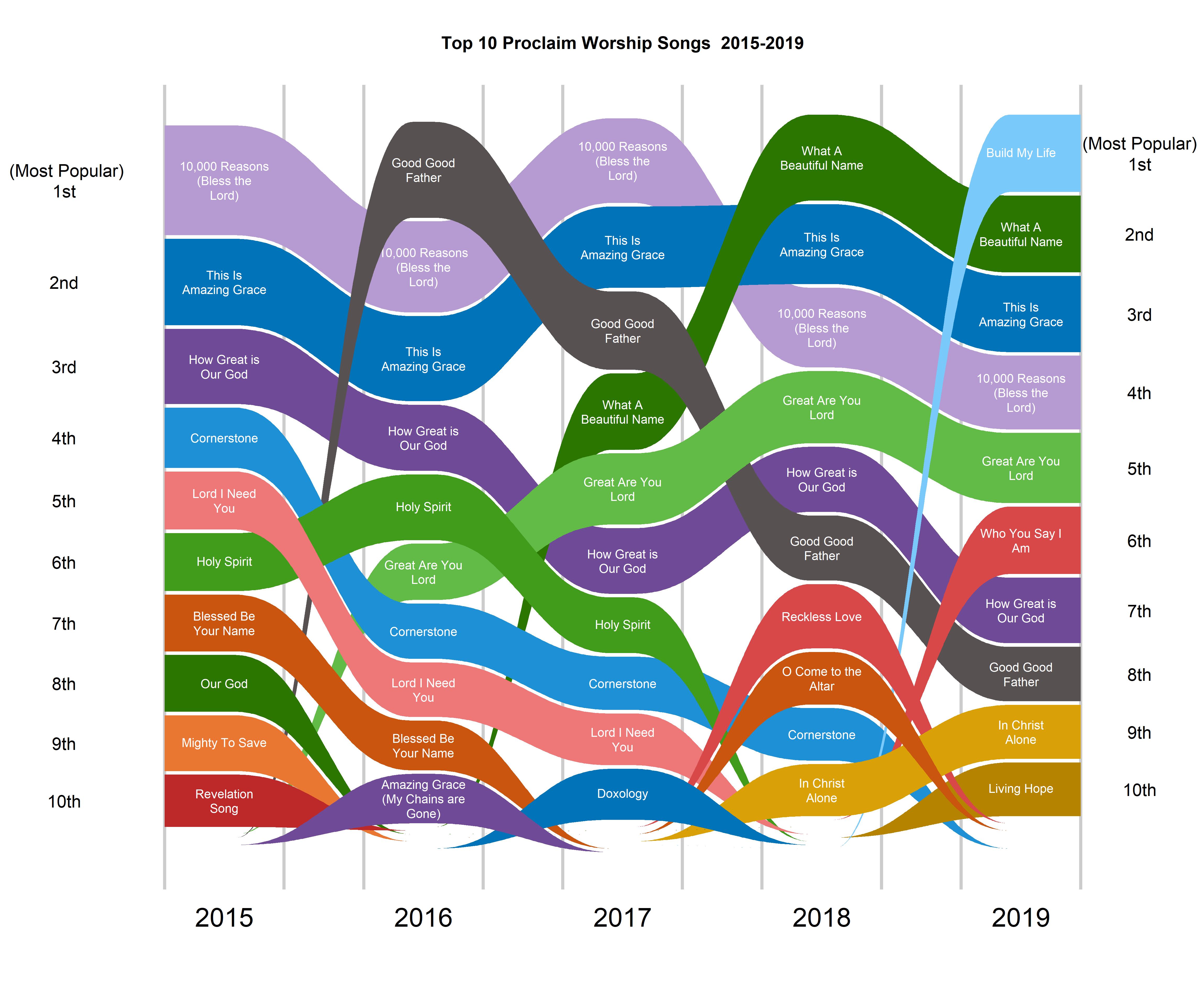 Faithlife Proclaim, a church presentation software from Faithlife, released data Wednesday showing the most popular worship songs of 2019 from the users of the software.