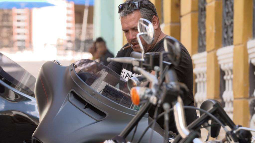 Image caption Ernesto Guevera shares his father’s love motorbikes and cigars