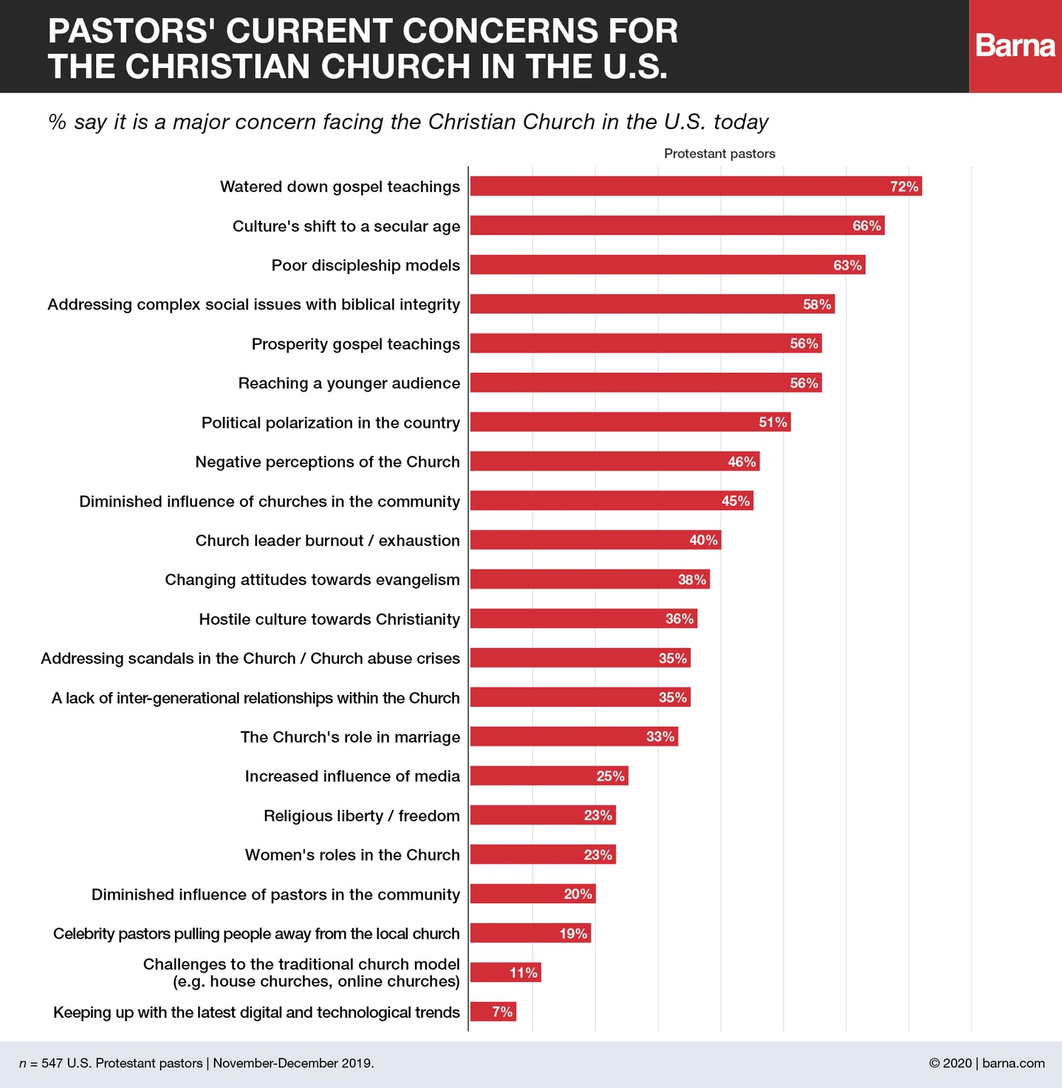 Barna surveyed 547 U.S. Protestant pastors and asked them which issues they believed were a major concern facing the U.S. Christian church.