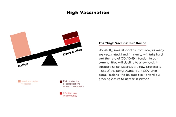 To navigate this transition period, I will explain how COVID-19 vaccination influences decisions about church gatherings and provide five suggestions that can help churches develop a plan to regather as vaccination coverage increases.
